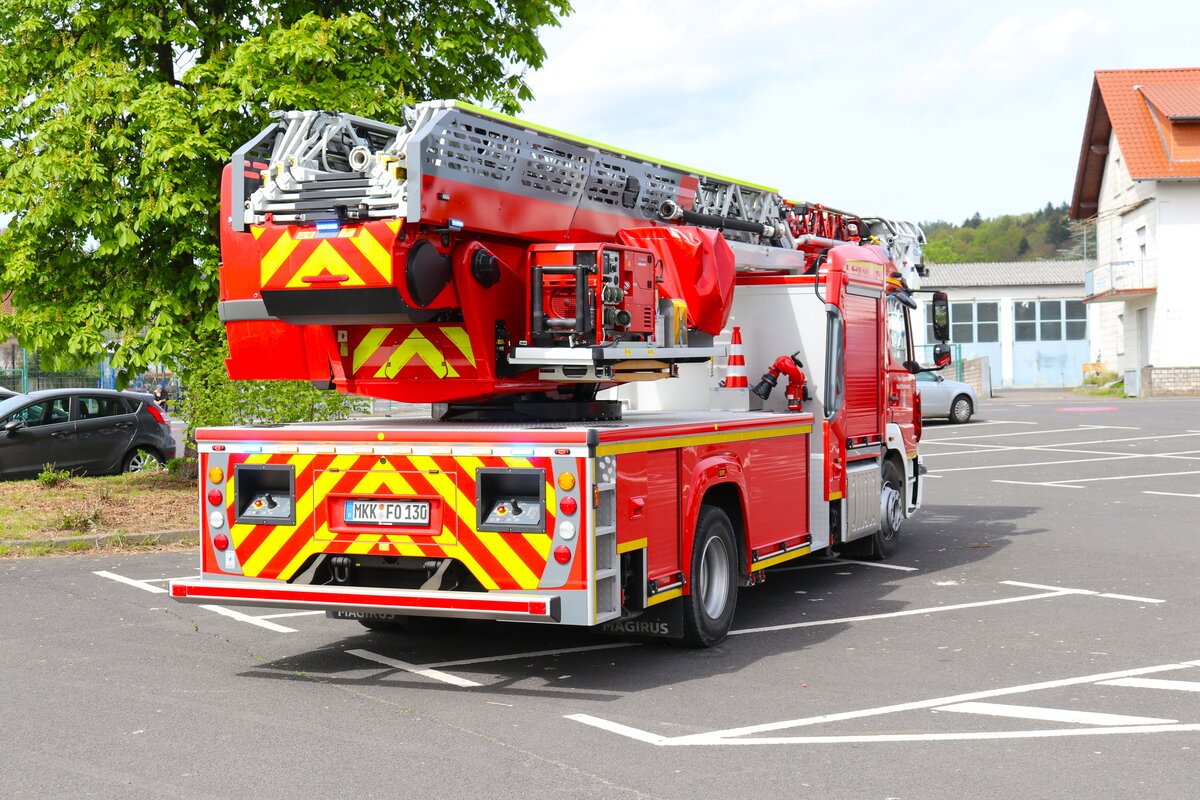 Feuerwehr Wächtersbach Mercedes Benz Atego DLK23/12 (Florian Wächtersbach 1/30/1) am 14.04.24 bei einen Fototermin. Danke für das tolle Shooting