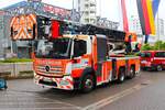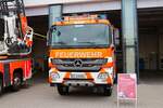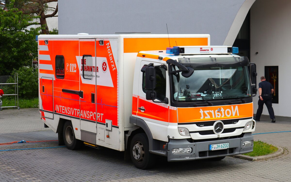 Die Johanniter Mercedes Benz Atego ITW am 05.05.24 in Frankfurt beim Tag der offenen Tür der Wache 3