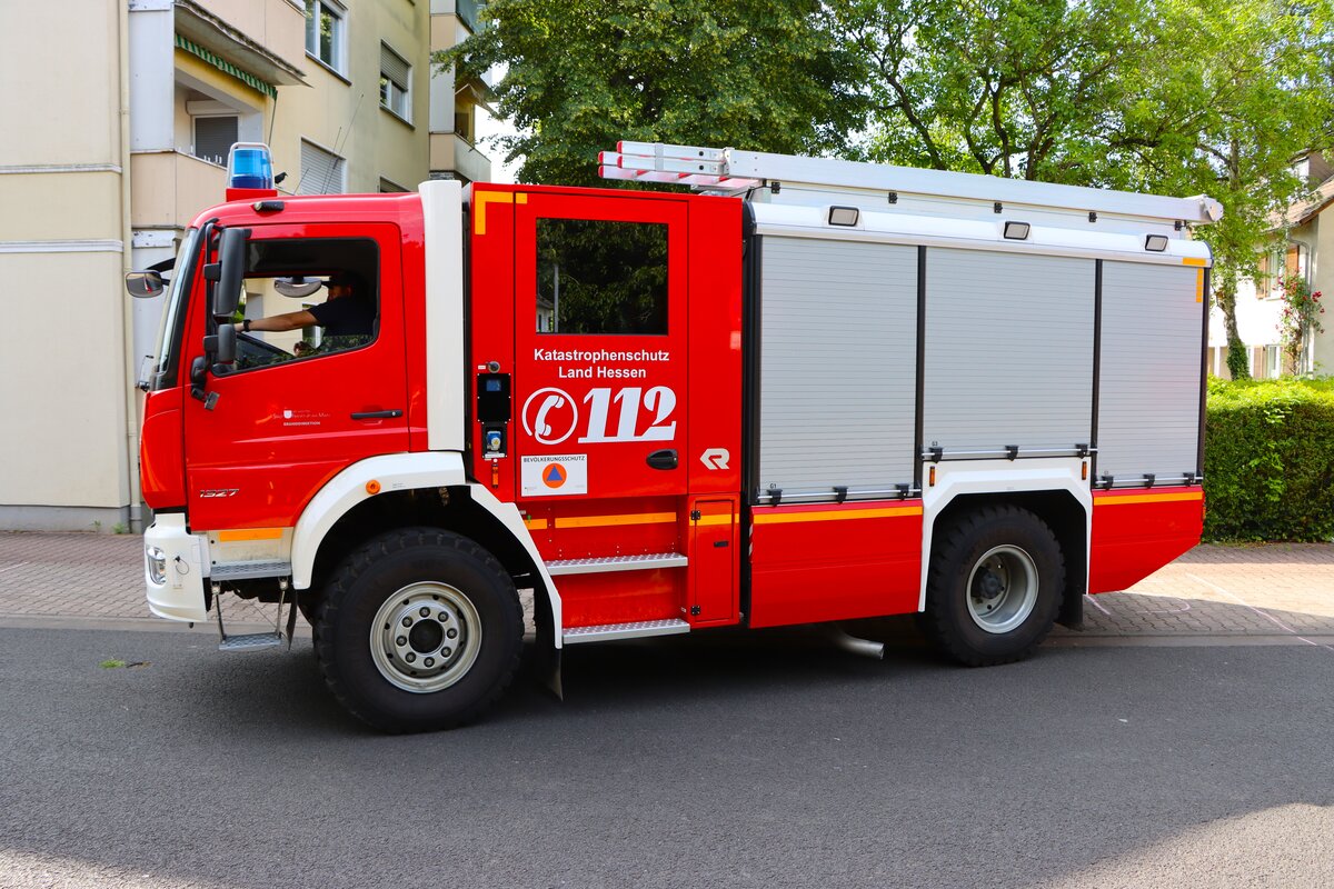 Mercedes Benz Axor, Containerabsetzkipper mit Kranaufbau der Gemeinde Esch Alzette, fährt am Bahnhof von Esch Alzette vorbei. 06.2024