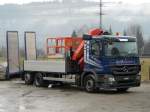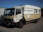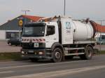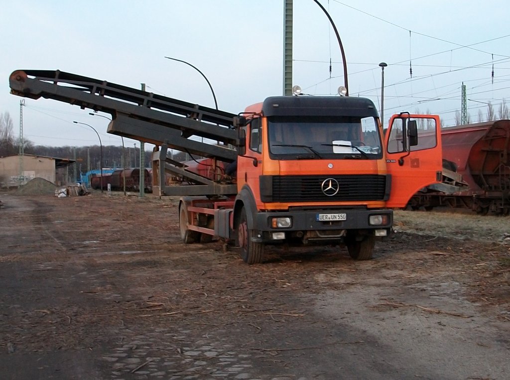 Alle LKW wurden mit Kies beladen nun konnte dieser Mercedes-LKW mit Förderband am 05.Oktober 2009 auf der Ladestraße in Bergen/Rügen endlich Feierabend machen.