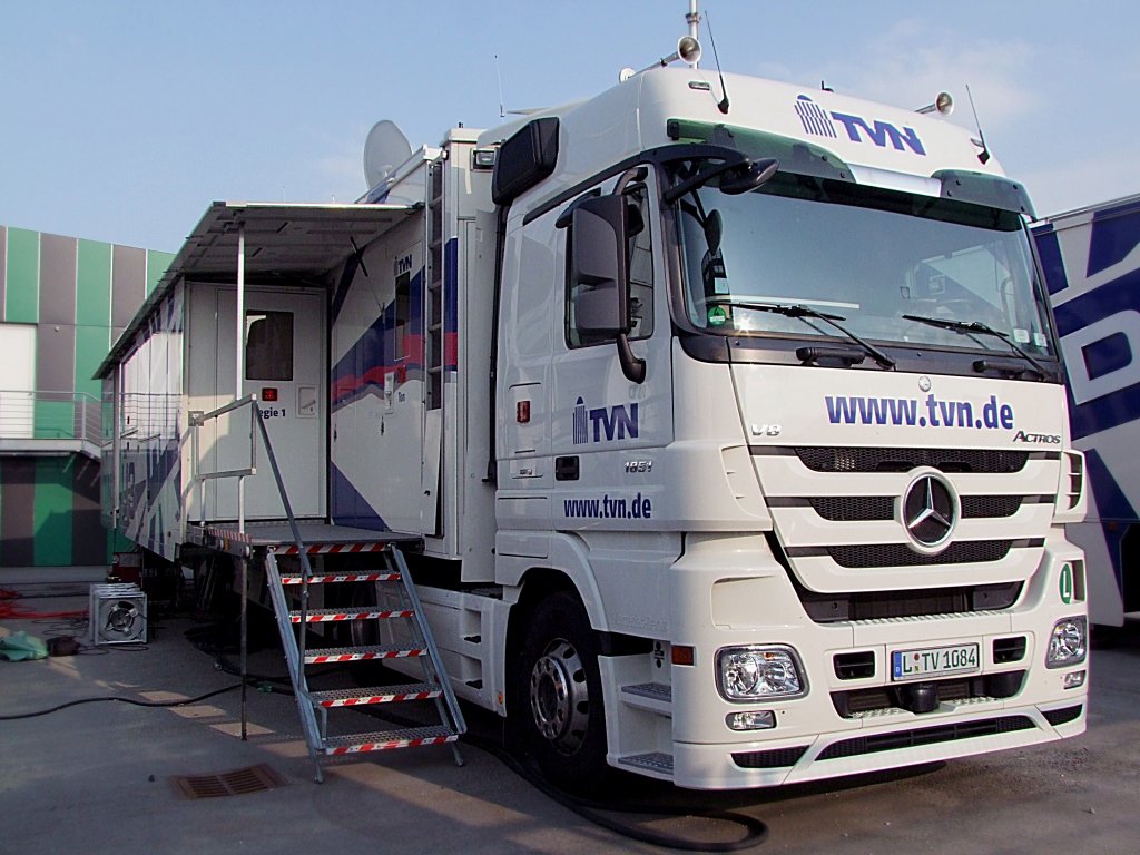 ACTROS1851_V8 mit TV-Übertragungsauflieger ist extra aus Leipzig zum ÖFB-Cupspiel nach Ried i.I. angereist;100421