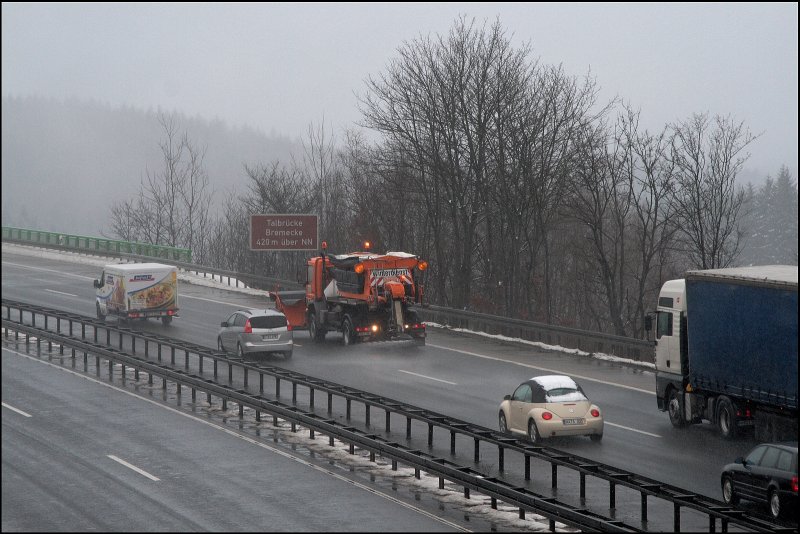 Mercedes-Benz Typ Atego 1828 der Autobahnmeisterei Lüdenscheid überquert die Talbrücke Bremecke Richtung Lüdenscheid. (26.03.2008)
