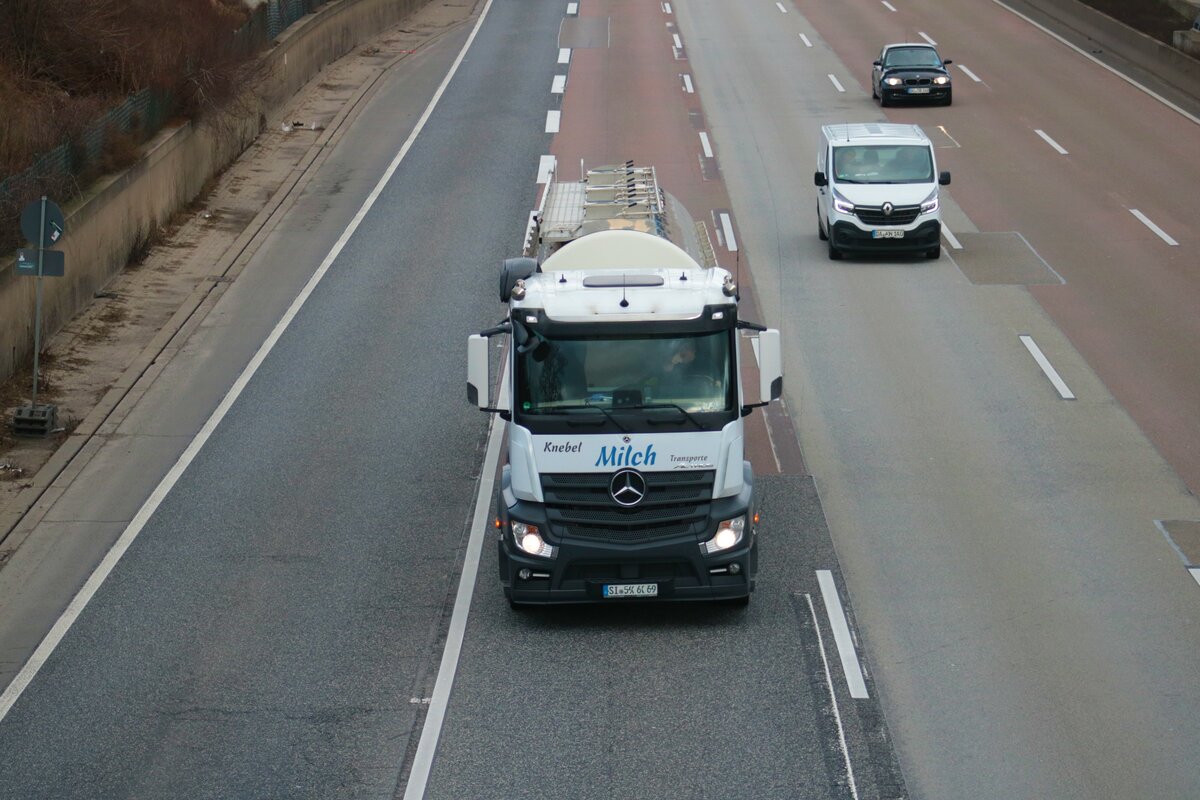 Mercedes Benz Actros am 05.02.22 von einer Brücke aus fotografiert