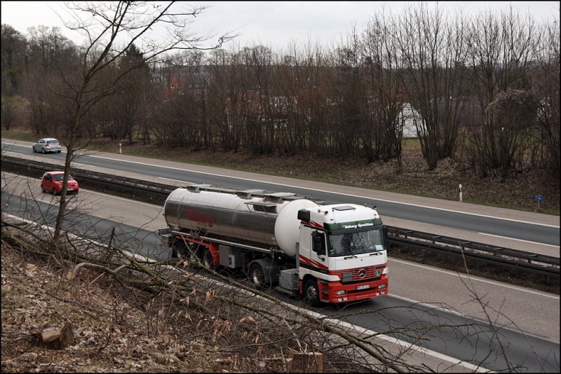 Actros 1843 der RÜBERG Spedition ist ebenfalls auf dem Heimweg nach Menden/Sauerland. (13.03.2009)