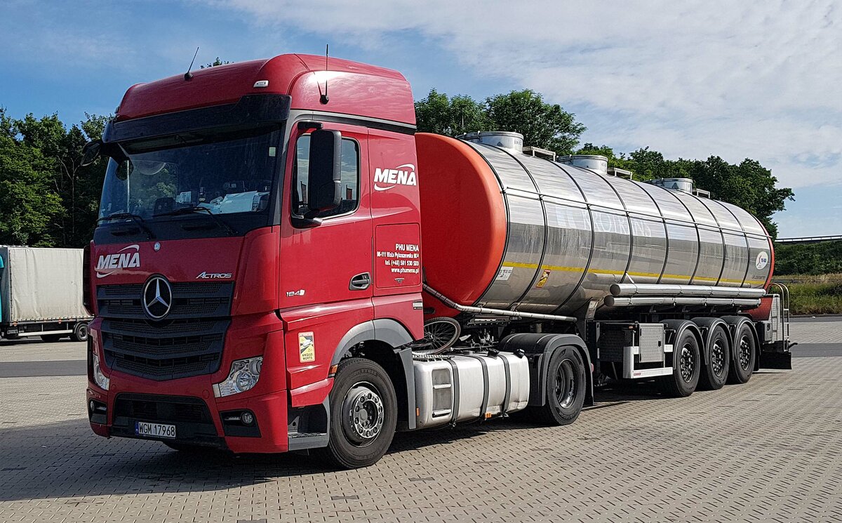 =MB Actros als Sattelzug für Lebensmitteltransporte der Spedition MENA rastet im Juni 2022 an der A 7