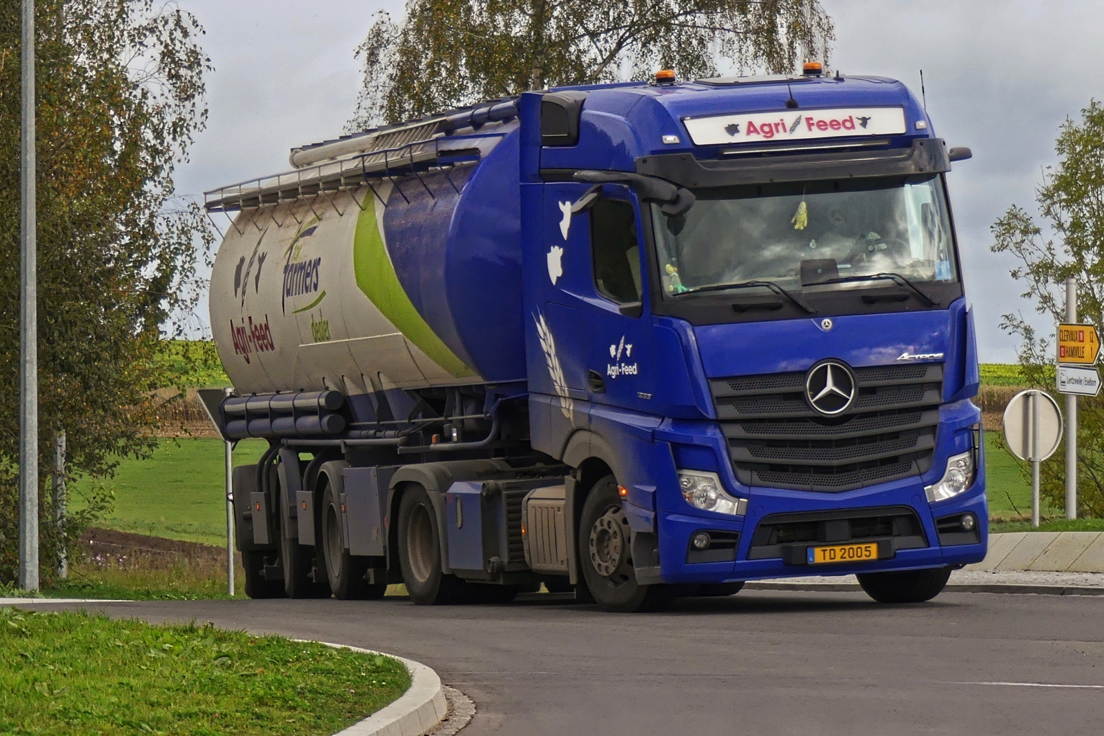 Mercedes Benz Silosattelzug von Agri-Fed, auf dem Weg zum nächsten Kunden. 10.2024