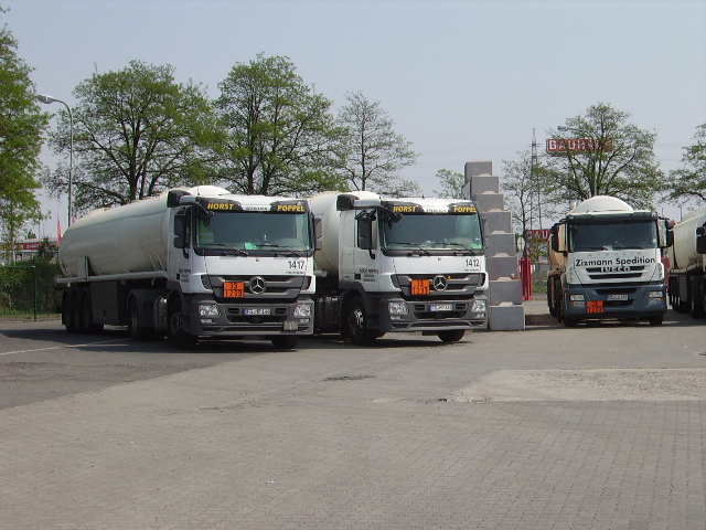 Zwei Mercedes Benz Tankzüge in Hanauer Hafen durch den Zaun fotografiert am 24.04.11