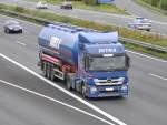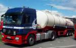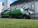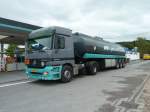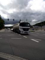M-B AXOR 184 D biegt aus der Industriezone von Wiltz auf die Hauptstraße und hat nun eine längere Steigung zu bewältigen. 10.10.2011