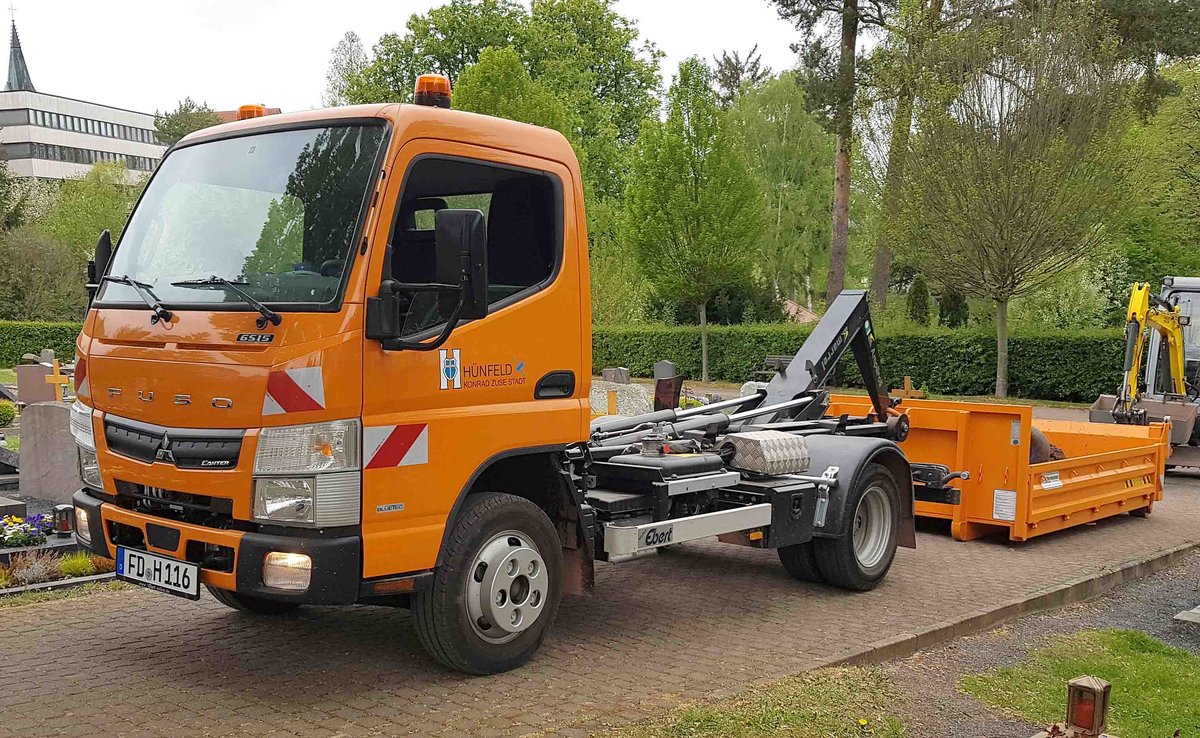 =Mitsubishi Fuso 6515 der Stadtwerke Hünfeld, eingesetzt bei Friedhofsarbeiten, 03-2020