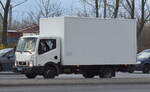 Nissan NT400 Cabstar 35.14 mit Kastenaufbau am 12.03.24 Berlin Marzahn.