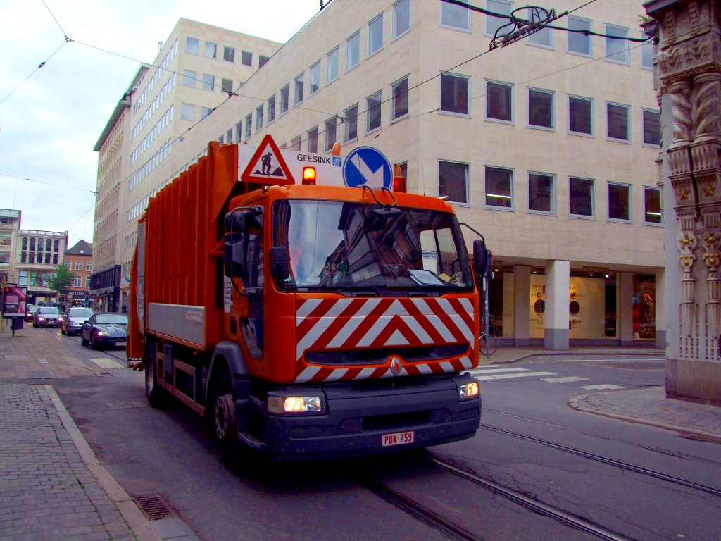 RENAULT-Müllwagen durchkämmt schon Frühmorgens die Straßen von Antwerpen; 110831