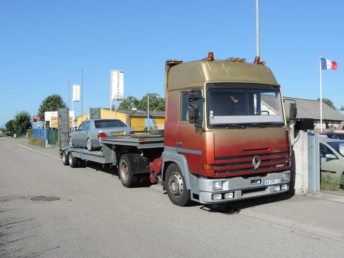 Benfeld, 08/08/2016 : Renault Major 340 ti mit Tieflader.