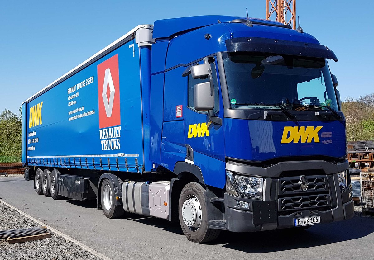 Renault-Sattelzug vom DWK steht zur Entladung in Hünfeld, 06-2020