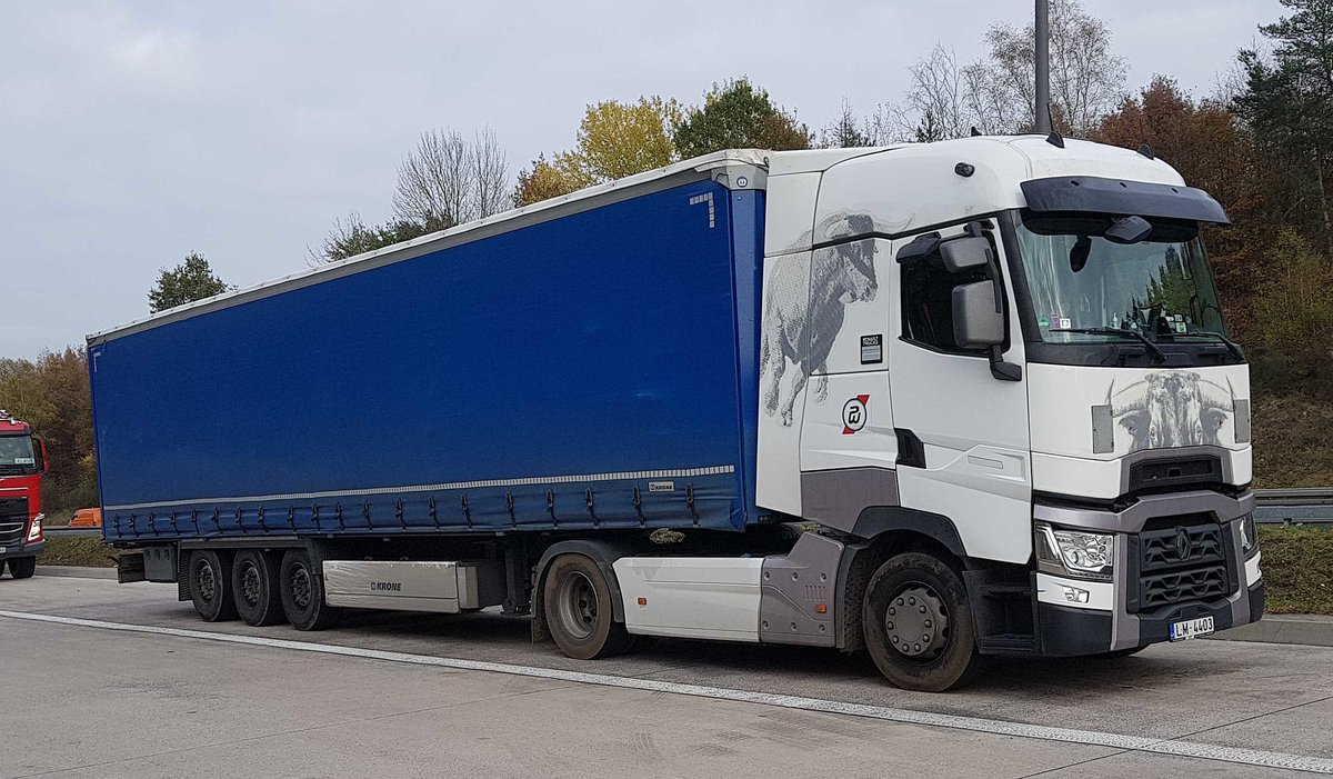 =Renault-Sattelzug steht auf einem Rastplatz an der A 7 im November 2020