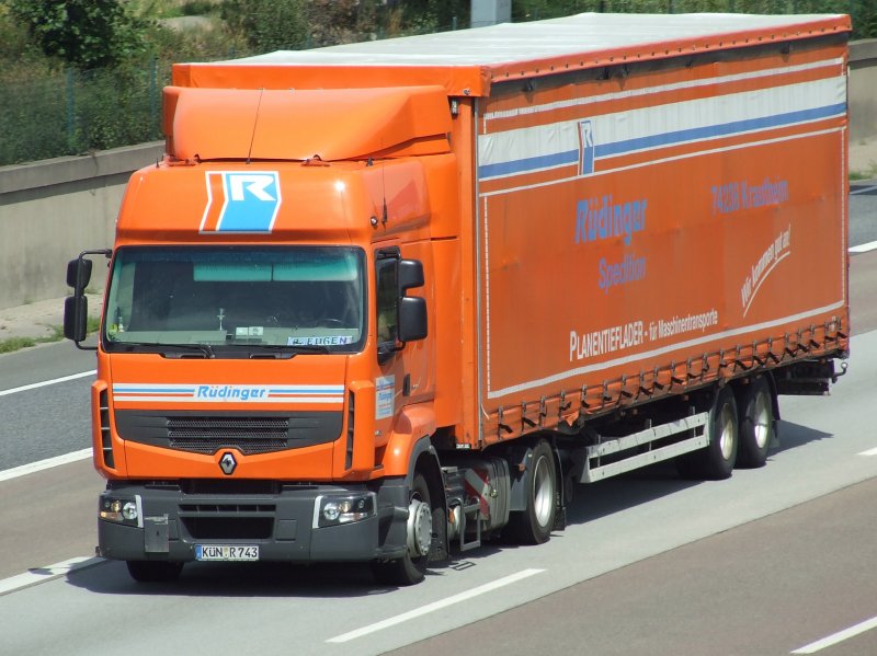 Ein neuer Renault Premium auf der A5 bei Frankfurt Flughafen auf dem Weg nach Norden. (07.08.2008)