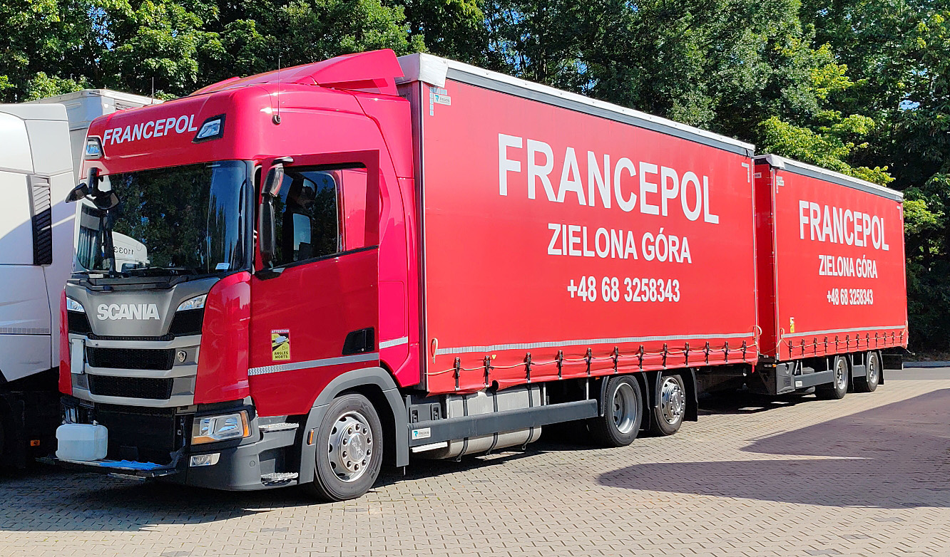 =Scania-Hängerzug der Spedition FRANCEPOL rastet im Oktober 2020 auf einem Rasthof an der A 7