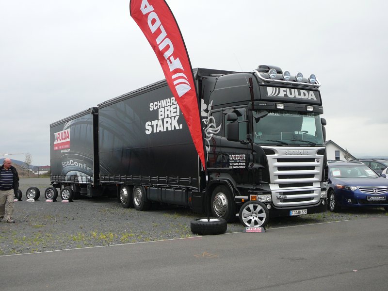 Scania R 420 als Werbeträger für FULDA-Reifen beim 1. Fuldaer Autotag am 04.10.2009 im Ausstellungsgelände "Fulda-Galerie"