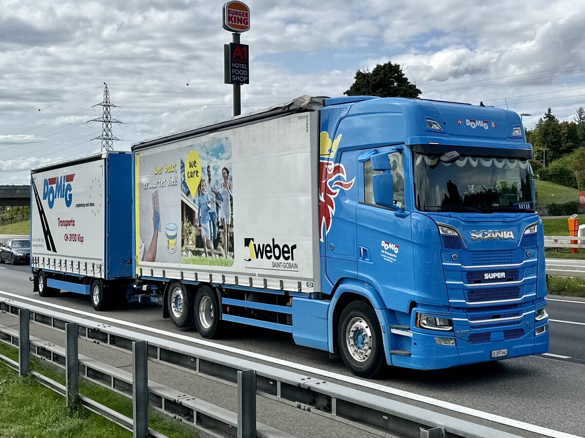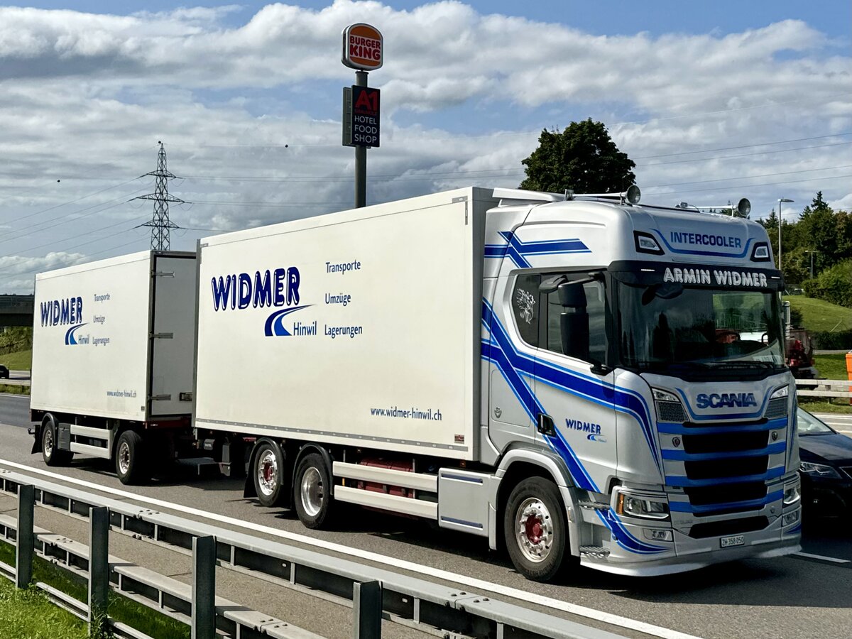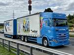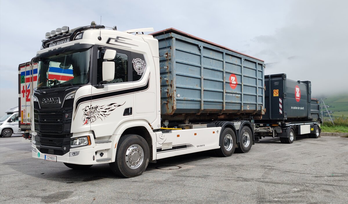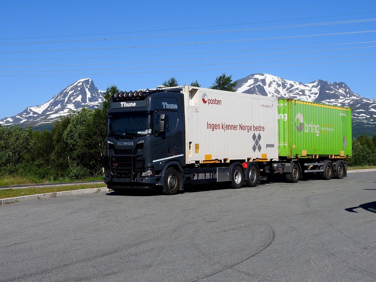 SCANIA mit Wechselbrücke samt Anhänger bei einer kleinen Rast am Parkplatz Heia (N); 250718