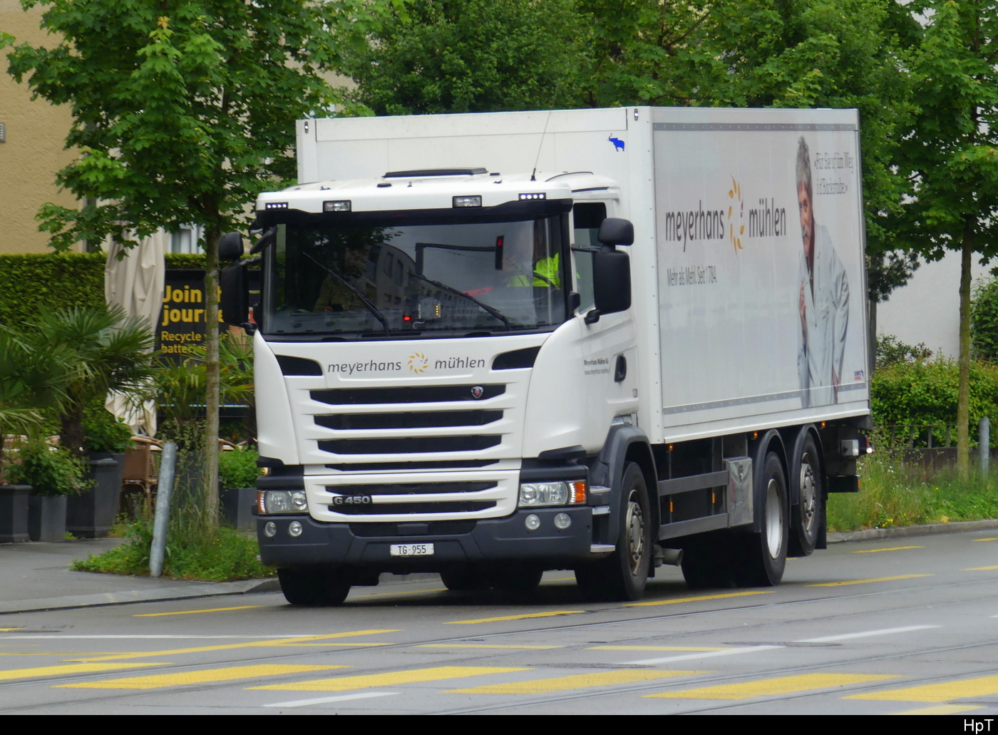 Scania G 450 mit Kastenaufbau unterwegs in Zürich Seebach am 2024.05.07
