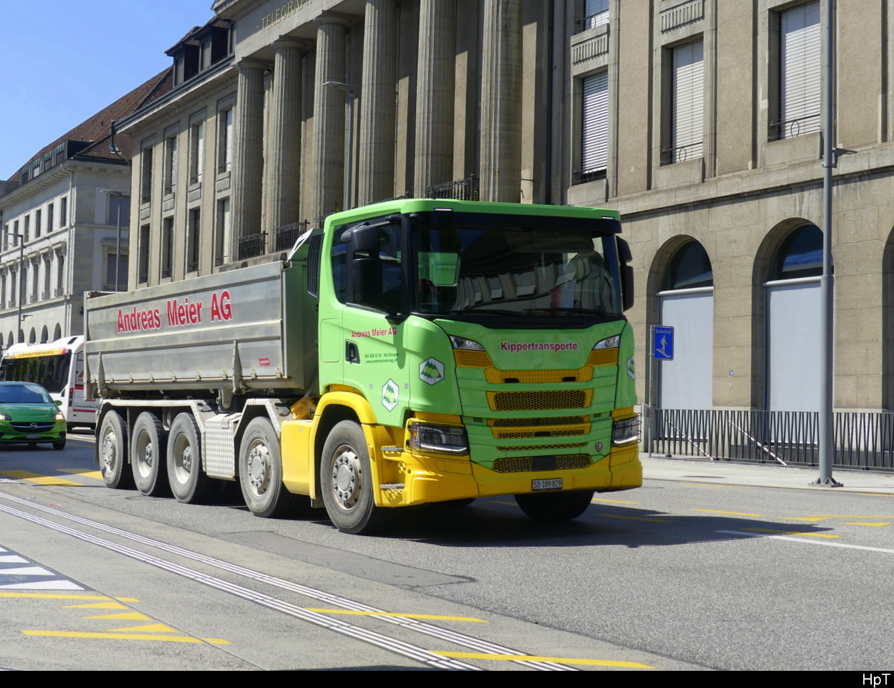 Scania Kipper unterwegs in der Stadt Aarau am 2024.08.16