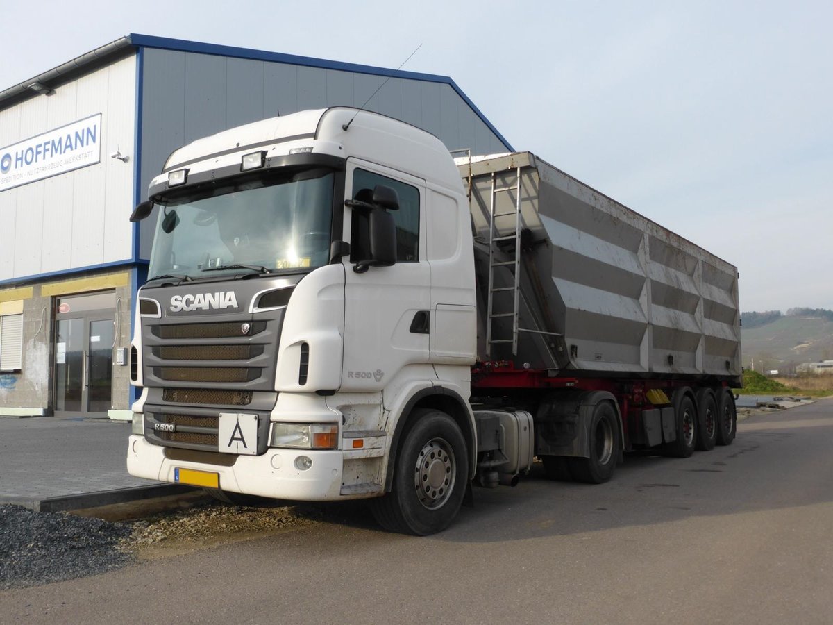 Scania R 500 Dreiachs-Kippsattelzug im August 2024 in Berlin.