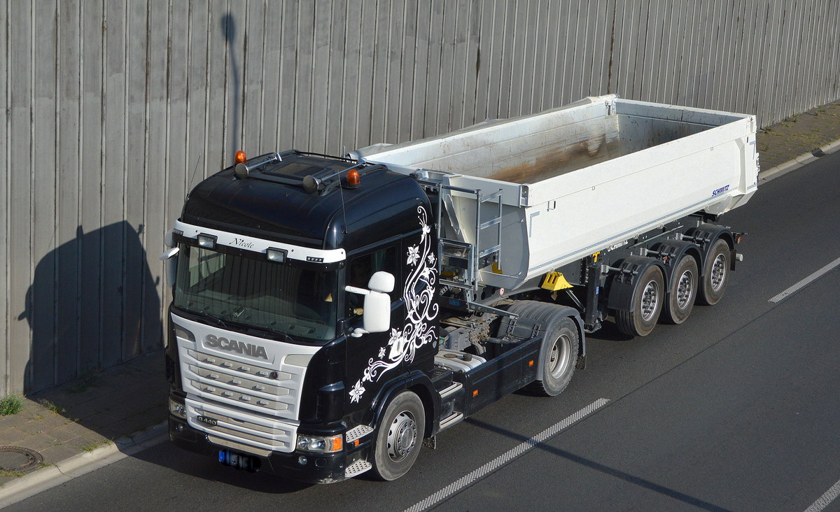 Ein Sattelkipper mit SCANIA G 440 Zugmaschine am 09.08.19 Berliner Stadtautobahn Höhe Kaiserdamm.
