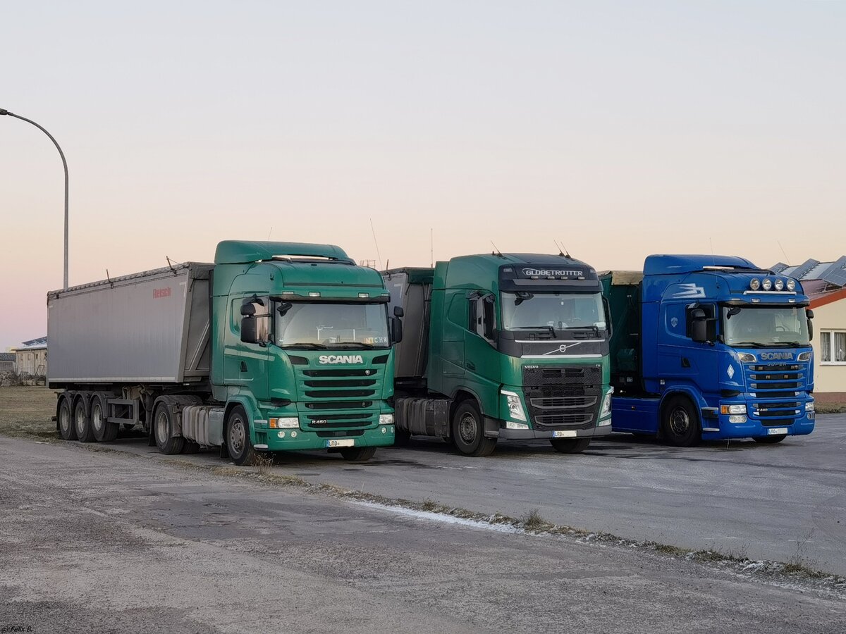 Scania R450, Volvo FH und Scania R440 Kippersattelzüge in Röbel am 14.12.2022
