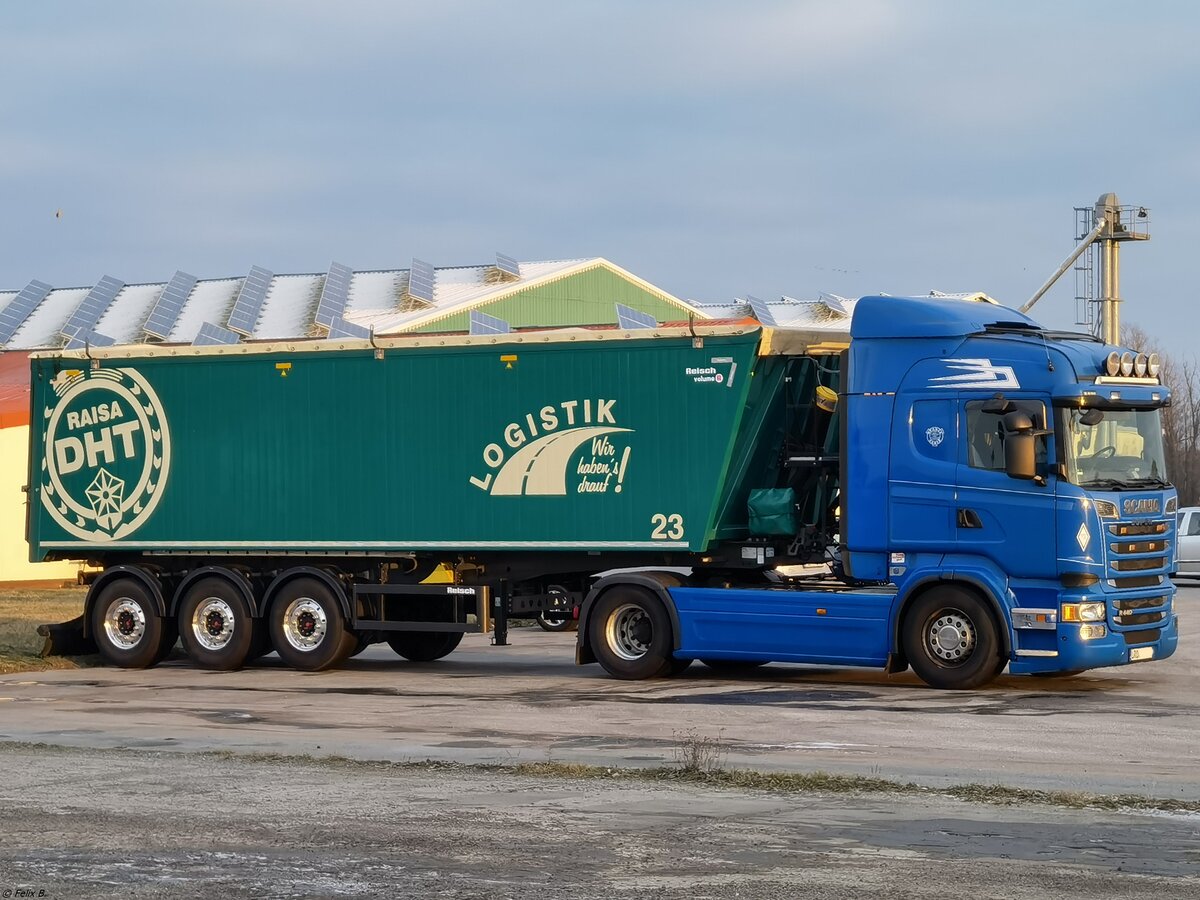 VERBIO Logistik GmbH aus Schwedt/Oder mit einem Sattelkipper mit optisch gefälliger SCANIA R 410 Zugmaschine am 02.02.23 Berlin Marzahn.