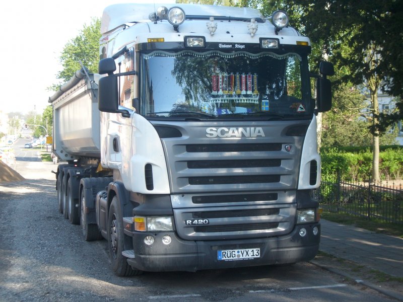 Ein SCANIA-Kipper an einer Baustelle im Stadtgebiet von Bergen/Rügen am 08.05.2008.