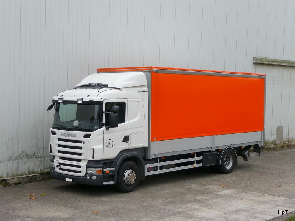 Scania P 280 mit Pritschenaufbau unterwegs in der Stadt Bernb am 14.11.2025