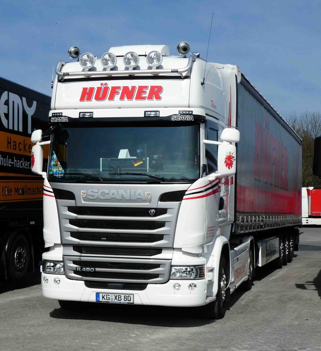 =Scania R 450 der Spedition "HÜFNER" rastet an der A 7 im März 2017