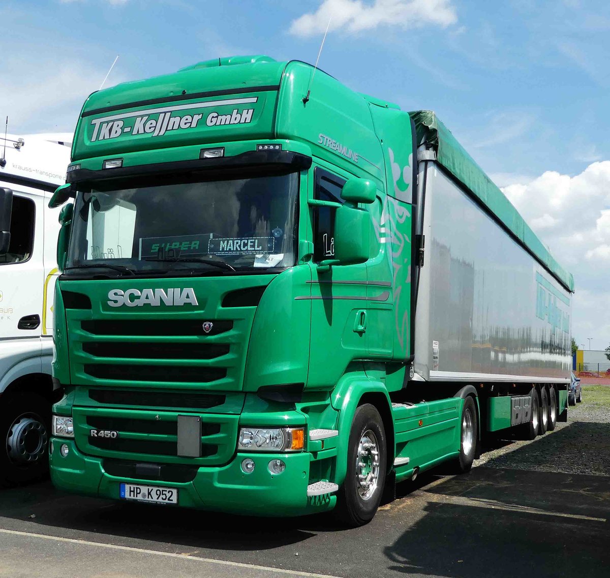 =Scania R 450 von "TKB-KELLNER" steht beim Country-, Trucker- und Streetfoodfestival Fulda im Juli 2017
