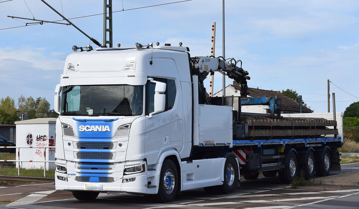 =Scania R 410-Sattelzug von HT-Transport rastet im Juli 2019 an der A 7