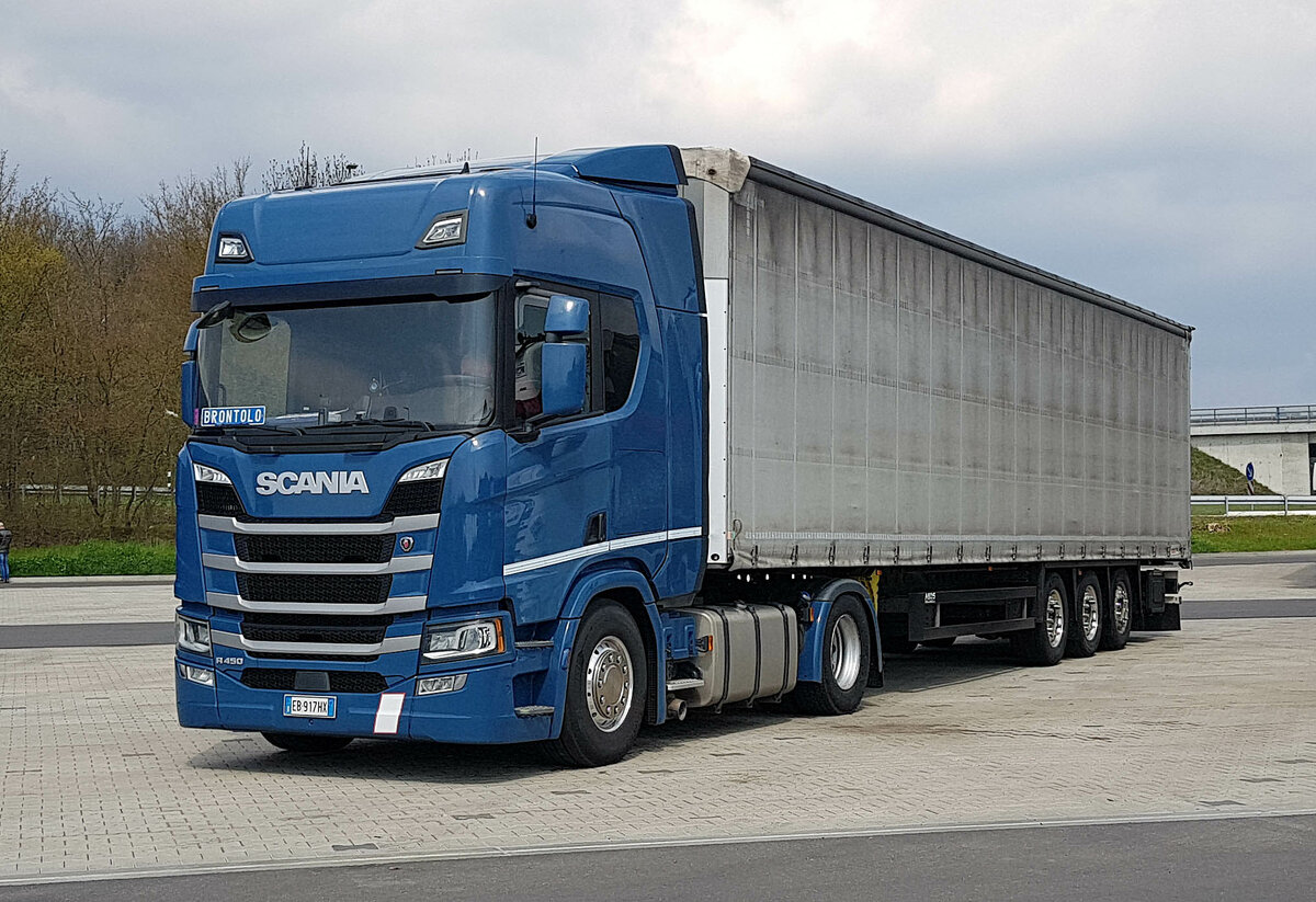 =Scania R 450-Sattelzug aus Italien rastet an der A 7, 04-2021