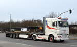Die polnische Spedition Max Pol. Międzynarodowy transport osób i towarów mit einem Sattelzug mit SCANIA Streamline 480 Zugmaschine am 03.02.22 Berlin Marzahn.