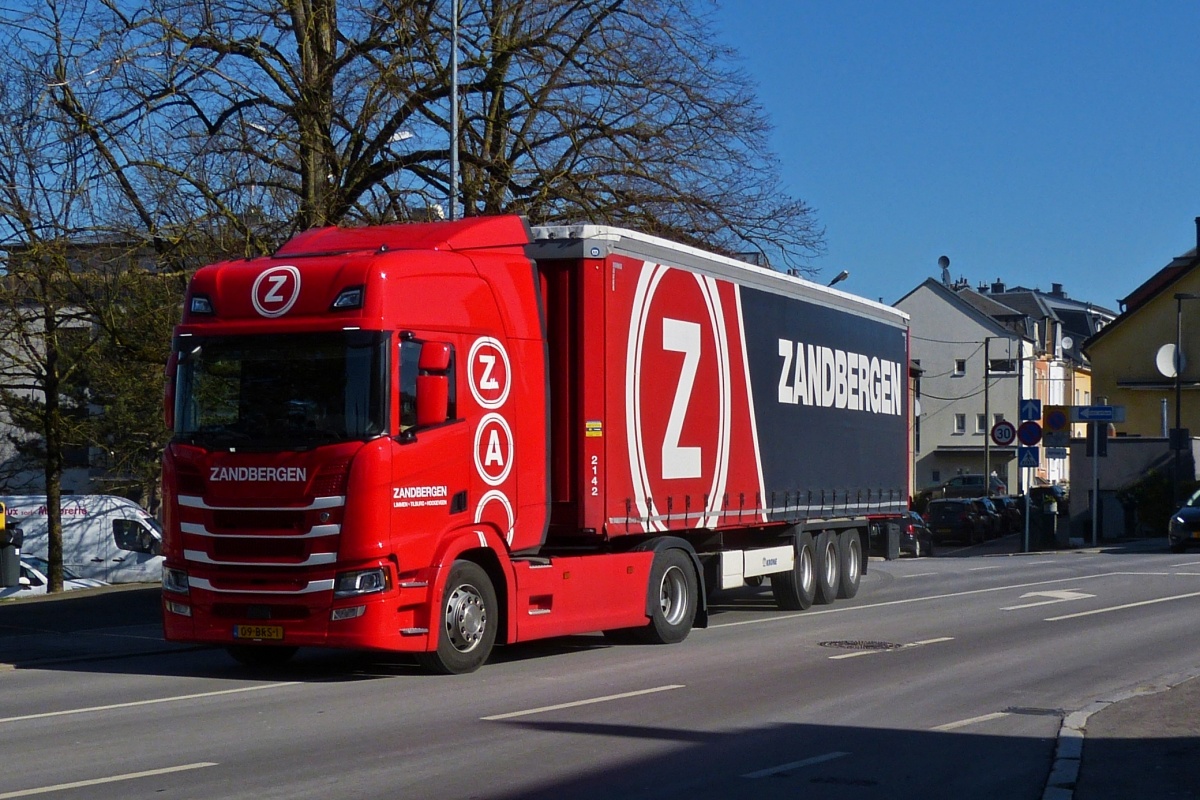 Scania Sattelzug aus den Niederlanden, aufgenommen im Süden von Luxemburg. 02.2022