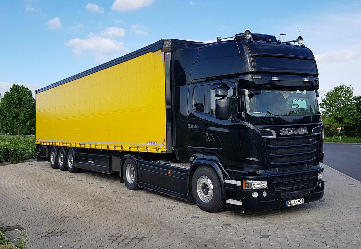 =Scania-Sattelzug rastet in der Nähe der A 7 im Mai 2022