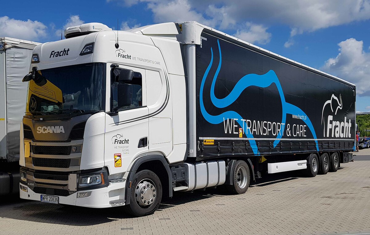 =Scania R 450-Sattelzug der Spedition FRACHT steht zur Fahrerpause auf einem Parkplatz an der A 7, 06-2022
