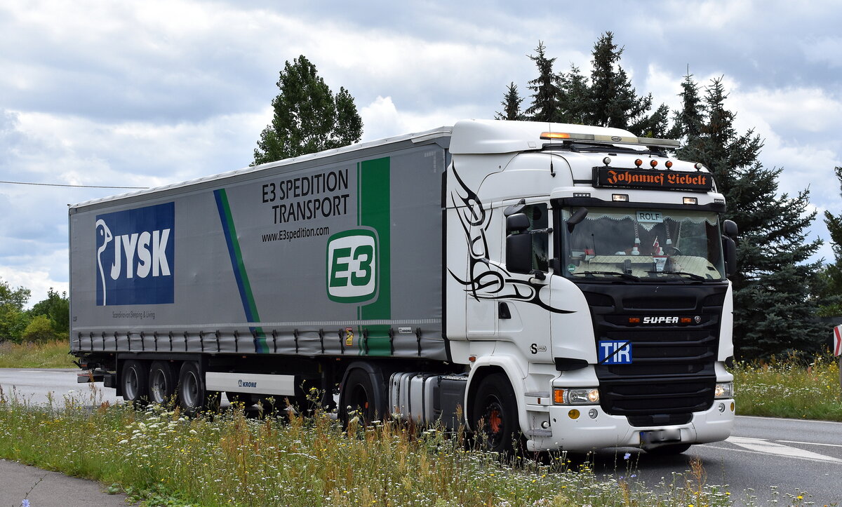 Transportunternehmen Johannes Liebelt mit Sattelzug und SCANIA Super Zugmaschine am 17.07.24 Bahnübergang Rodleben.