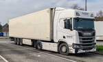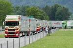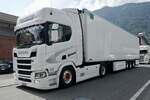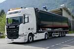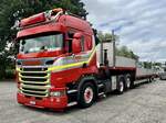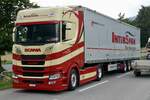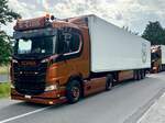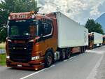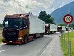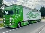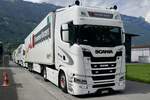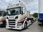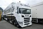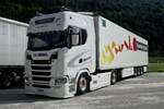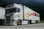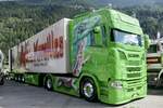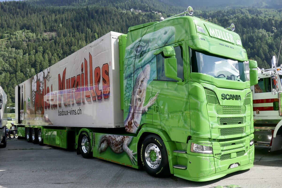 Ein Scania Sattelzug von Müller Ermensee der am 14.7.24 beim Trucker Treffen in Ambri steht.