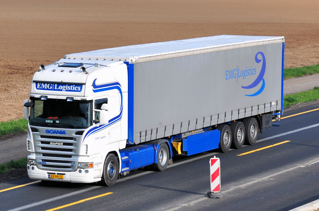 Scania R 500  EMG Logistics  auf der A61 bei Heimerzheim - 04.05.2010