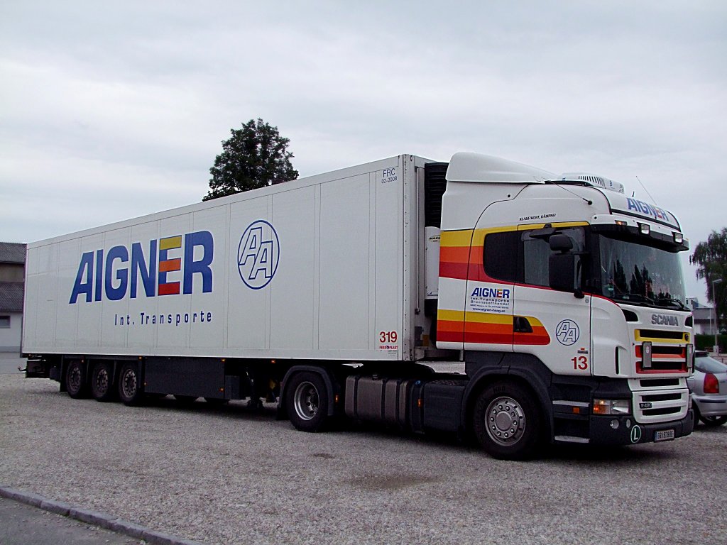 SCANIA_R420 von Transporte Aigner bei einer kleine Rast am Messegelände in Ried;100818