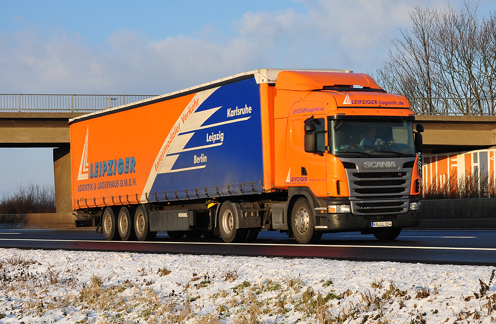 Scania G 440 "Leipziger Logistik" auf der A61 bei Miel - 15.12.2010