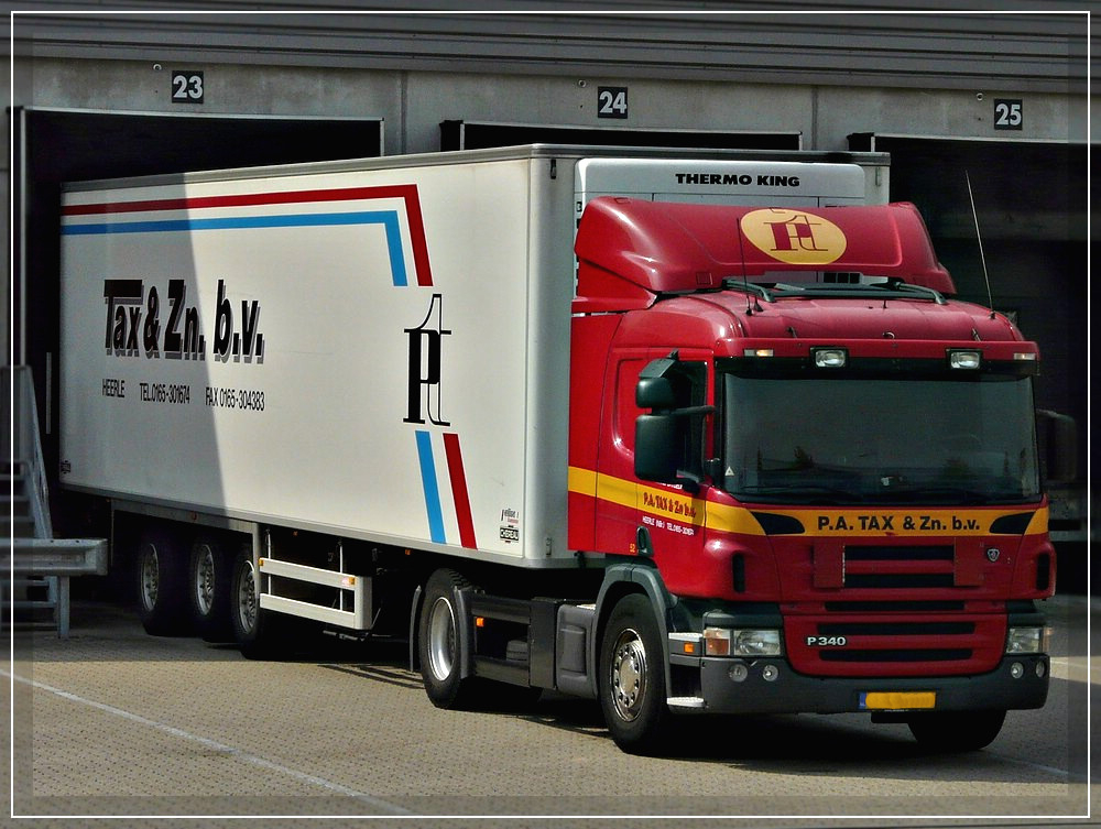 Scania P 340 Kühltransporter aufgenommen während dieser bei einer Lagerhallebeladen wird. 02.09.11