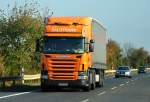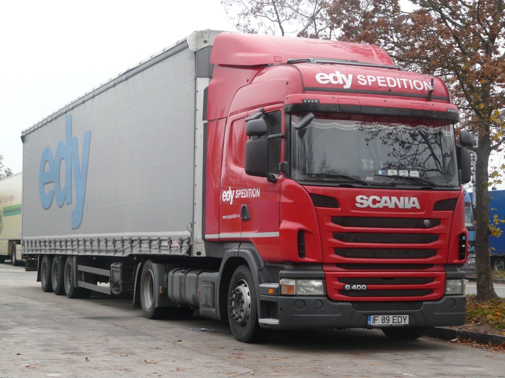 Scania G400 "Edy Spedition" aus Rumänien auf der Rastanlage "Frankenhöhe" an der A6, 11.11.2011