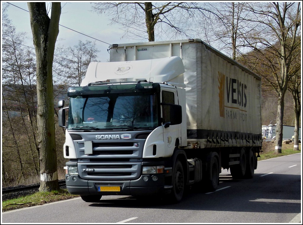 Scania P420Sattelzug des Luxemburger Bauernverbandes "Versis" gesehen am 09.03.2012.