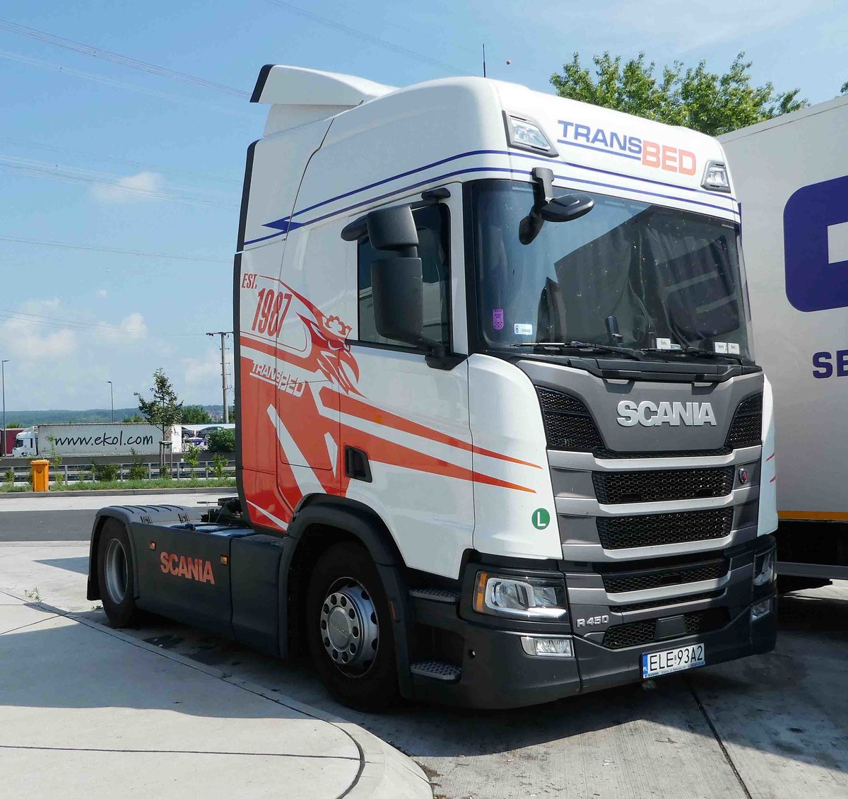 =Scania R 450 Sattelzugmachine von TRANDBED, Juli 2018