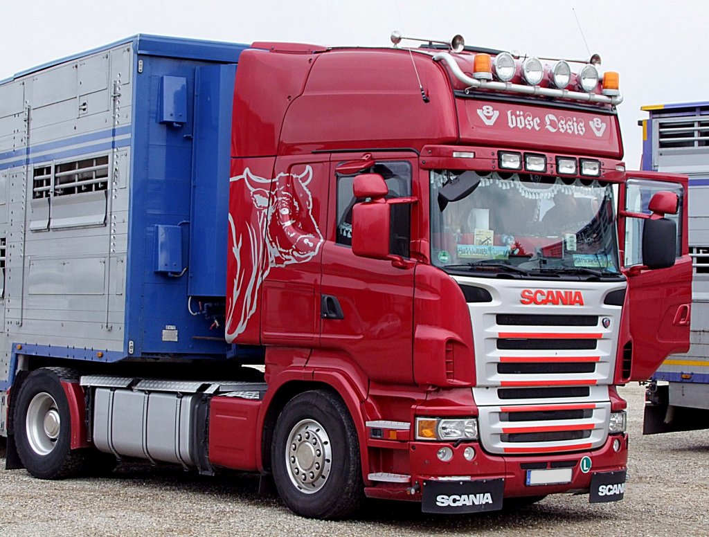SCANIA R620,V8 als Zugmaschine für einen Großviehtransportauflieger;110609