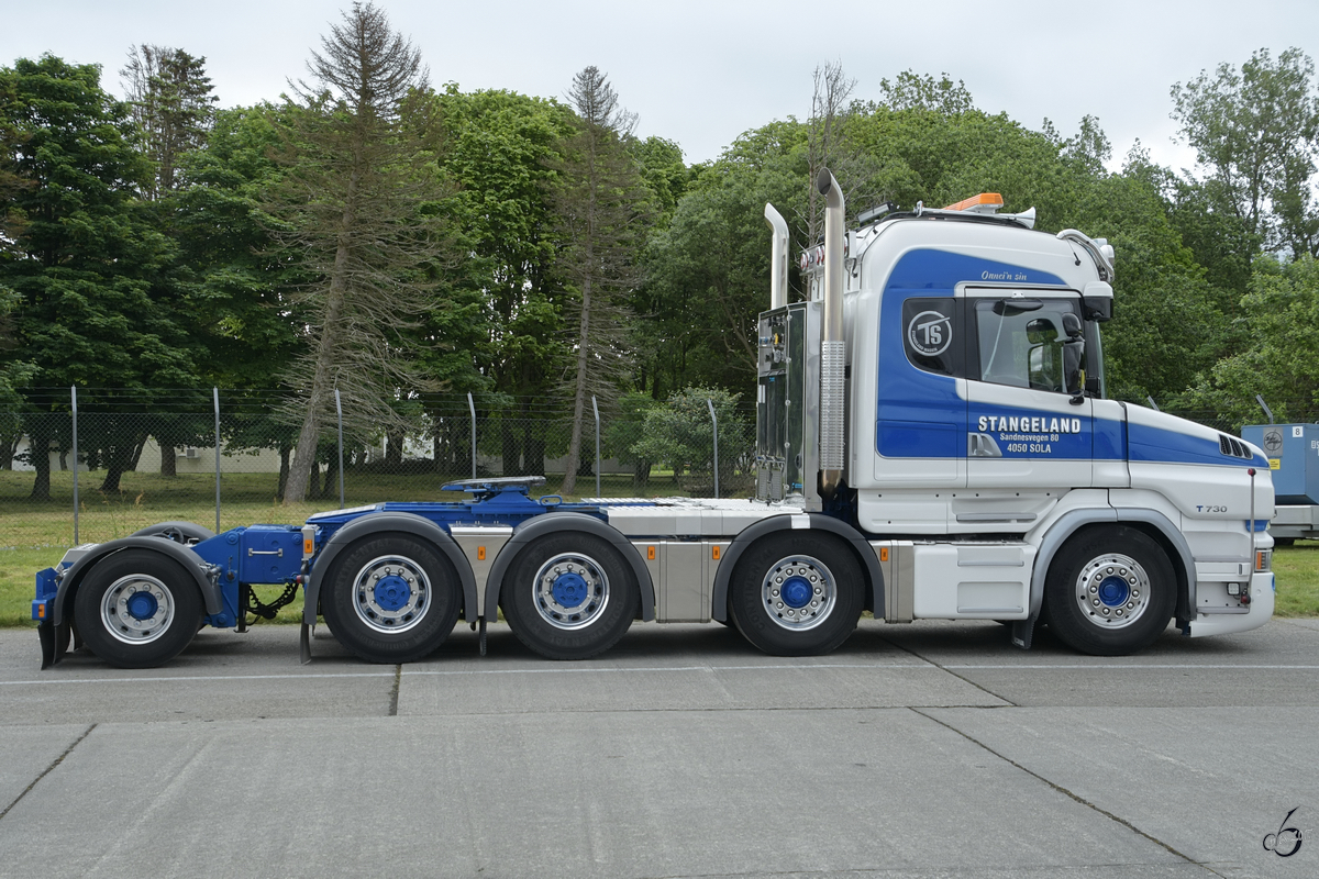 Eine Scania T730 V8 aufgenommen auf dem Flughafen Stavanger. (Sola, Juni 2017)
