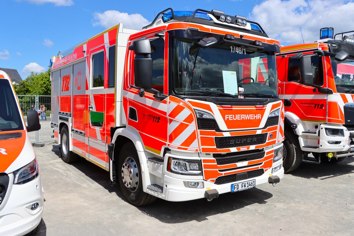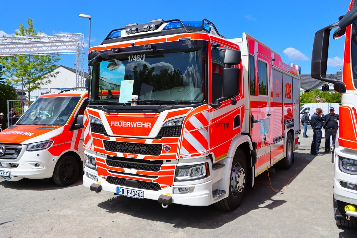 Feuerwehr Bremerhaven Scania P360 Lentner HLF20/16 am 18.05.19 auf der RettMobil in Fulda